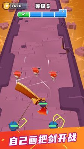画剑对决是一款休闲益智闯关类游戏,专为测试玩家的想象力与观察能力而设计。玩家可自由替换武器,通过绘制武器并测试其对敌效果,面对连续敌潮,同时解锁各类武器与皮肤进行深度体验。