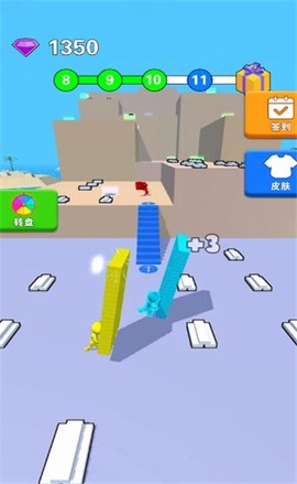 3. 只需简单滑动手指,便能轻松掌控小人的动向。想挑战自我,就尽量堆叠更多的砖块,享受独特的闯关乐趣。