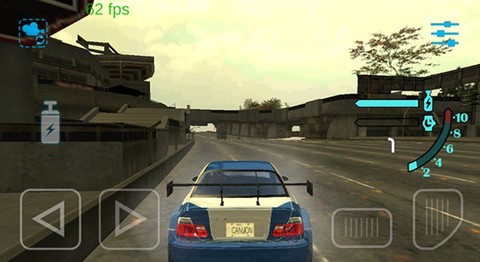 3、游戏内置两种操控模式:默认模式下,通过左右倾斜设备控制方向,右下角按键用于加速,左下角按键负责刹车。