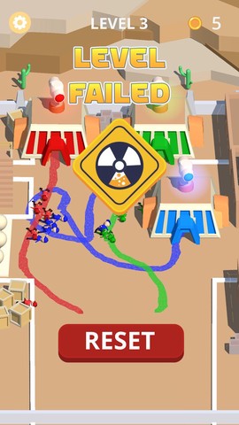 2、每一关卡中玩家需为不同颜色的群体规划独立行进路线,避免颜色混杂或触碰危险区域。