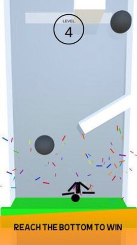 1、这游戏最戳人的就是那股子极简风,背景色块鲜艳得像打翻调色盘,火柴人扭动的姿势贱萌贱萌的,玩久了眼睛也不累。