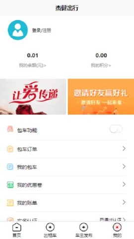 1、下载杰健出行app,使用手机号码进行注册,开启你的便捷出行之旅;