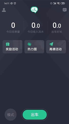 2、点击“出车”,随时进行听单,务必保持高效接单状态,让每一个机会都不浪费。