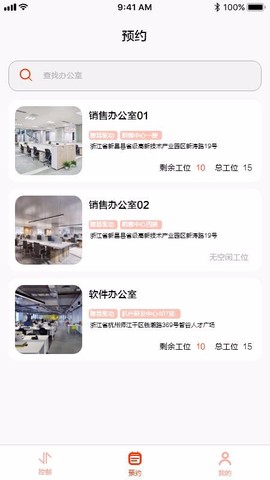 5、内置便捷的办公室预约中心,提供多类型办公空间的可视化查询与预约服务;